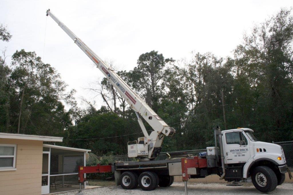 Step 1Always use the right tools for the job. In this case a large crane with a professional crane operator is essential to ensure the safety of the structure and the crew. The use of a crane also speeds up the process by allowing fast removal of large pieces of the tree at one time, and moving it away from the structure to a safe spot to be further cut up if necessary before loading onto our truck to be hauled away. |